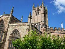 This prosperity is expressed in stone masonry, wood carvings and stained-glass at St. Laurence's parish church; effectively a wool church, it is the largest in Shropshire and a member of the Greater Churches Group. Despite the presence of some Decorated work it is largely Perpendicular in style.[26] Its size and grandeur has given it the nickname "the cathedral of the Marches", and since 1981 there has been a Bishop of Ludlow, a suffragan bishop.