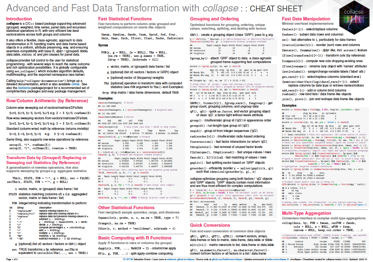 collapse is a large C/C++-based package for data transformation and statistical computing in R. It aims to: