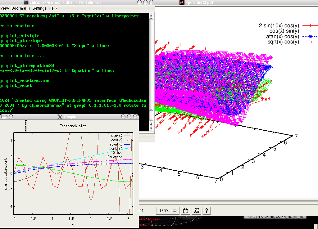 | | This is the home of gnuplotfortran - a library to enable direct control of a Gnuplot session from your Fortran 95 code. Other interfaces to Gnuplot can be found at http://ndevilla.free.fr/gnuplot/ . I would like to think that the Fortan implementation provided here is far more feature rich than those :) Explore around and let me know. |