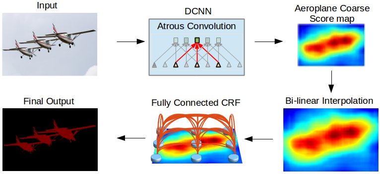 Liang-Chieh Chen*, George Papandreou*, Iasonas Kokkinos, Kevin Murphy, and Alan L. Yuille (*equal contribution)