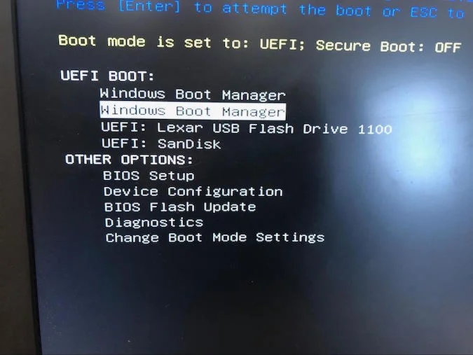2. I turned on the computer, and while it was starting up, I tapped the F12 to enter the BIOS, where I was presented with some options.