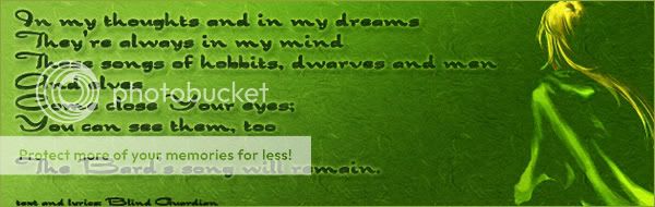 | My works can be found at a few places: My writing LJ, Silmarillion Writers Guild (Silmarillion fiction). Artwork can be found at Deviant Art Archives with a selection of works: Stories of Arda, Wraithbait, Naice A Nilme (Aragorn & Arathorn fic), Ficwad and Lord of the Rings Fanfiction, Henneth Annûn Story Archive, Fanfiction.net, Adult Fanfiction.net & OSA. Communities: beleriandbards(co-owned with house_of_feanor(co-owned with forestofavalon(co-owned with |