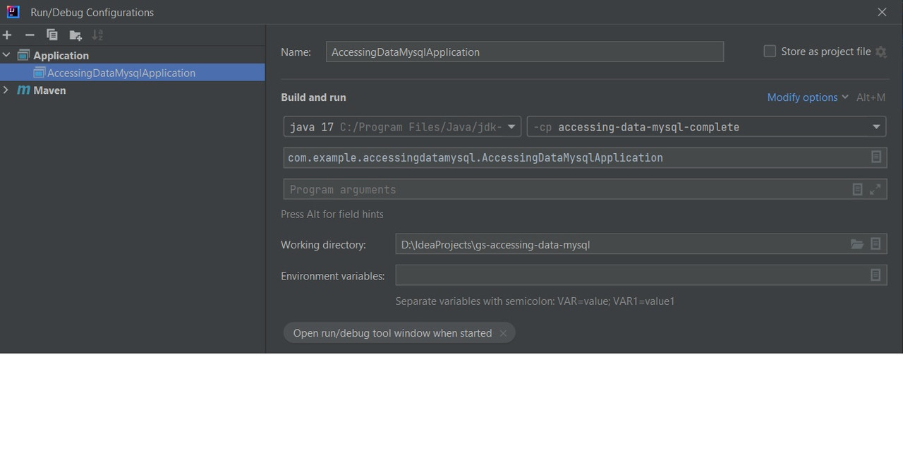 java 17, -cp accessing-data-mysql-complete