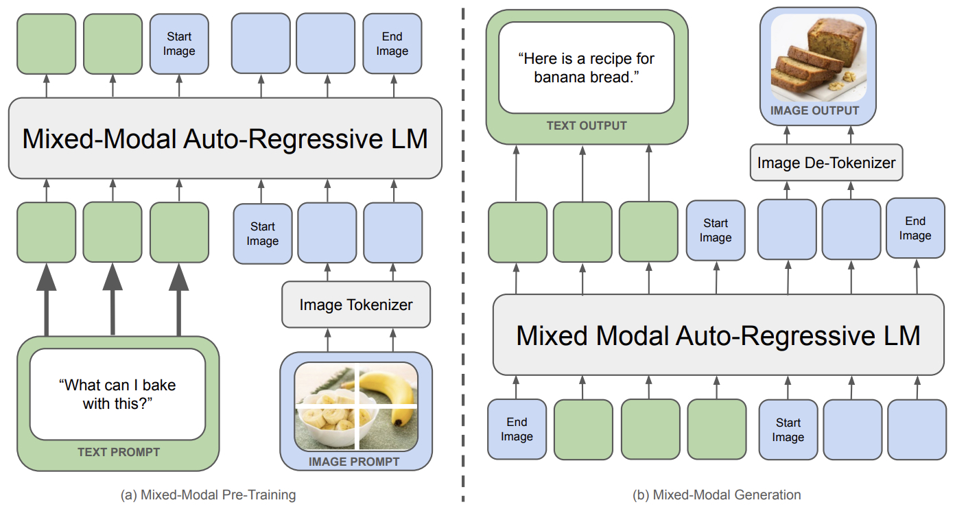 - Multimodal Generation Approach: When it comes to multimodal generation (like images), a common method in previous works was to transform the multimodal target (e.g., the ground-truth image) into discrete tokens, allowing them to be generated autoregressively like text. However, this approach is limited by the generation decoder’s quality, typically based on Variational Autoencoder (VAE) methodologies.