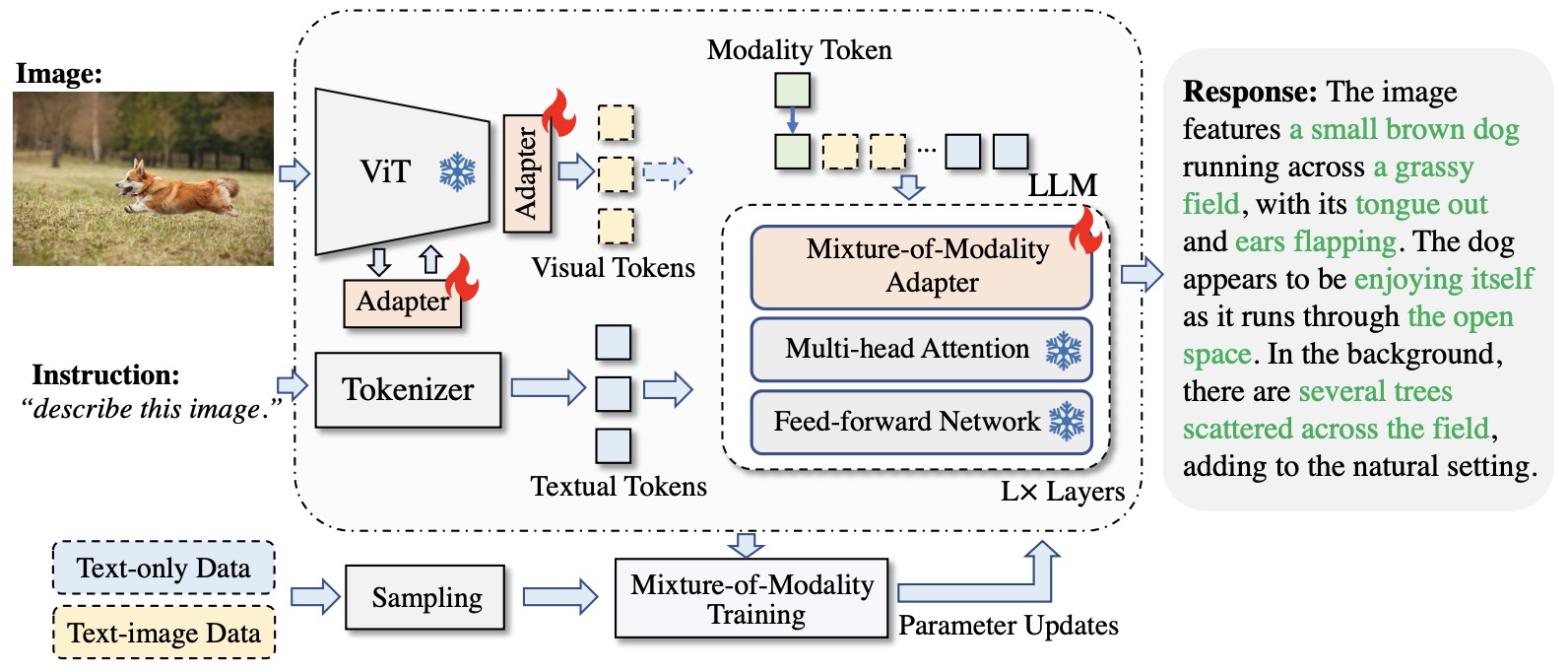 - The figure below from the paper offers an illustrates of the lightweight multimodal alignment learning of encoding and decoding.