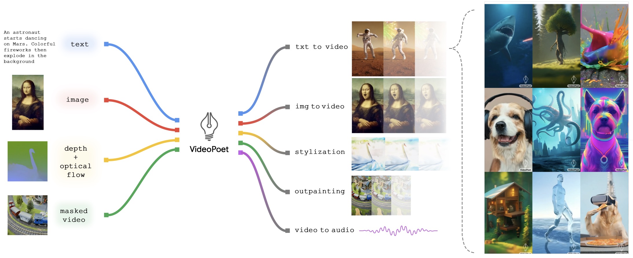 - Joint Multimodal Generation: The final step involves enabling cross-attention between the diffusion flows of different modalities. This is critical for joint generation, i.e., generating outputs that comprise two or more modalities simultaneously, including text.