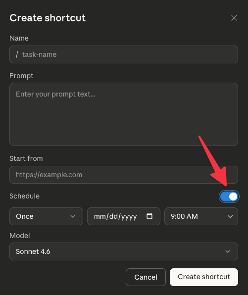 Claude might tweak your prompt to make it more robust. Review it and adjust if necessary. Also, toggle on “schedule” and pick when the task should run.