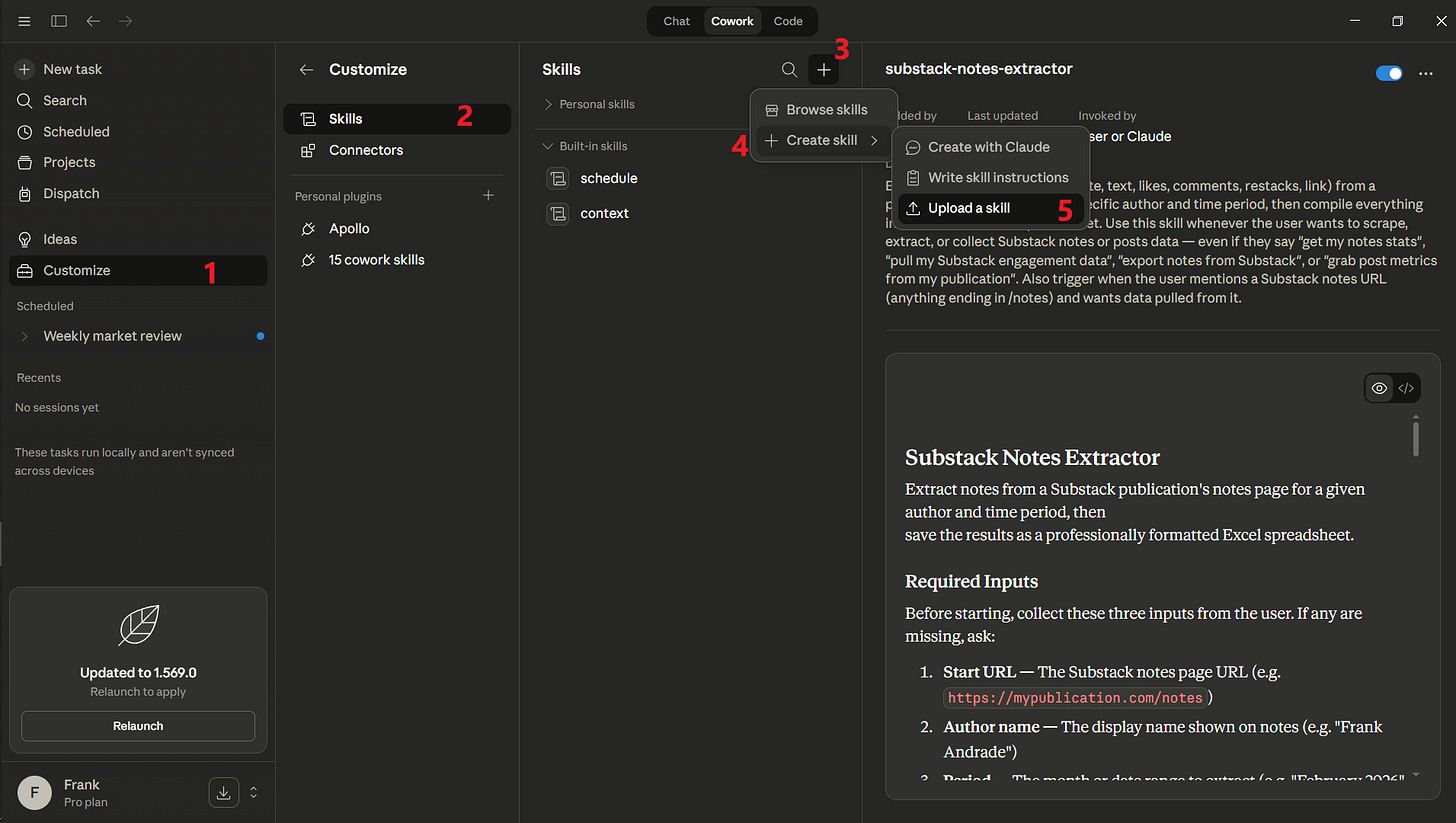 Pro tip: You can turn any Cowork chat into a reusable skill. Just click the dropdown arrow in your chat name and select "Turn into skill."