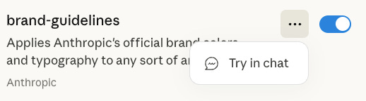 You can click on the three dots and click “Try in chat“ or simply let Claude figure out which skill to use. In my experience, Claude is quite good at matching your request to the right skill — just make sure you know what each of your installed skills does so you can phrase your prompts accordingly.