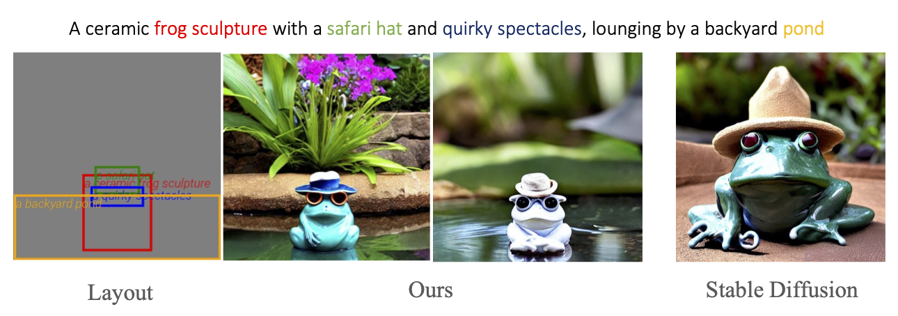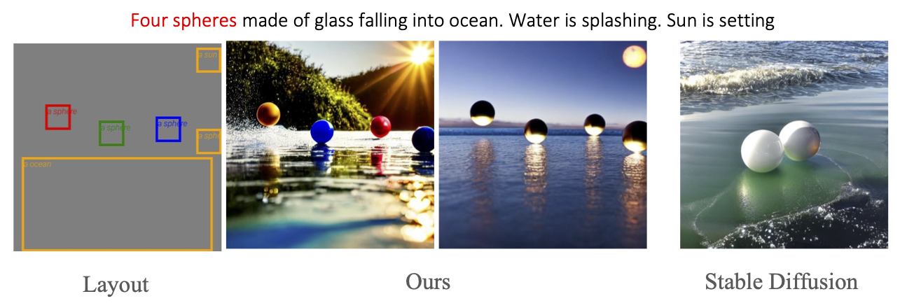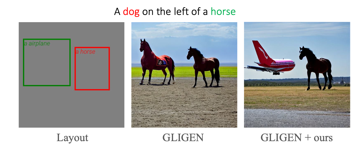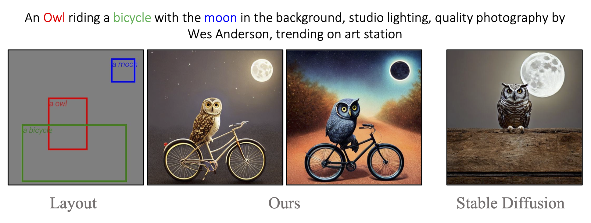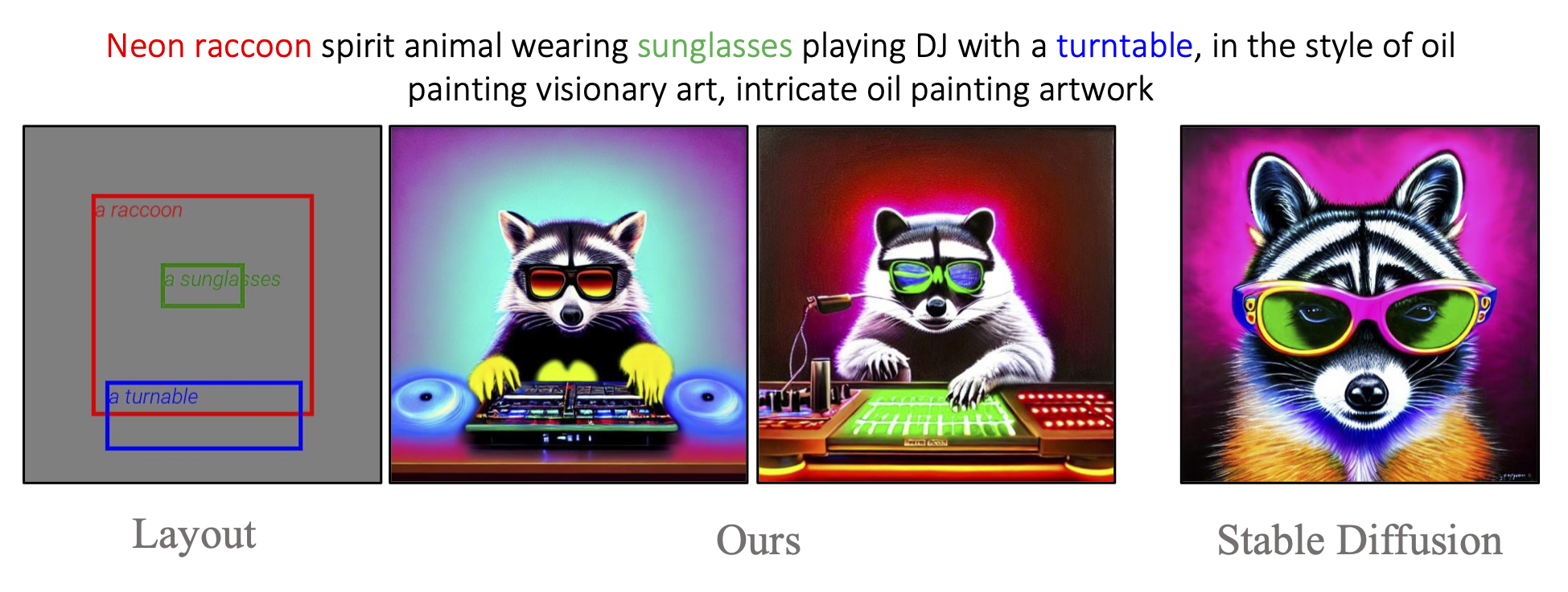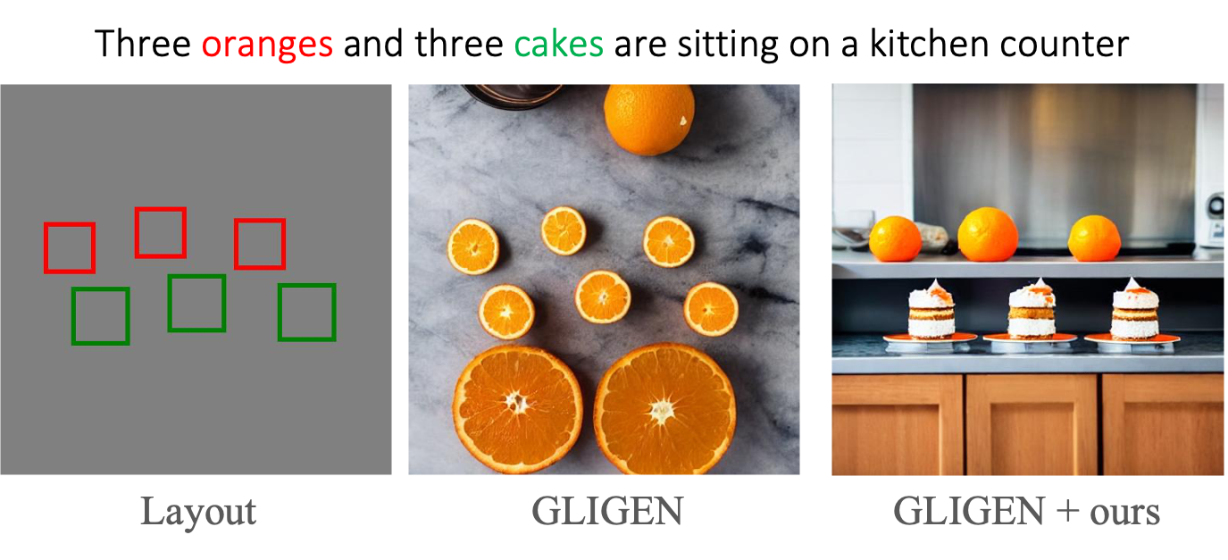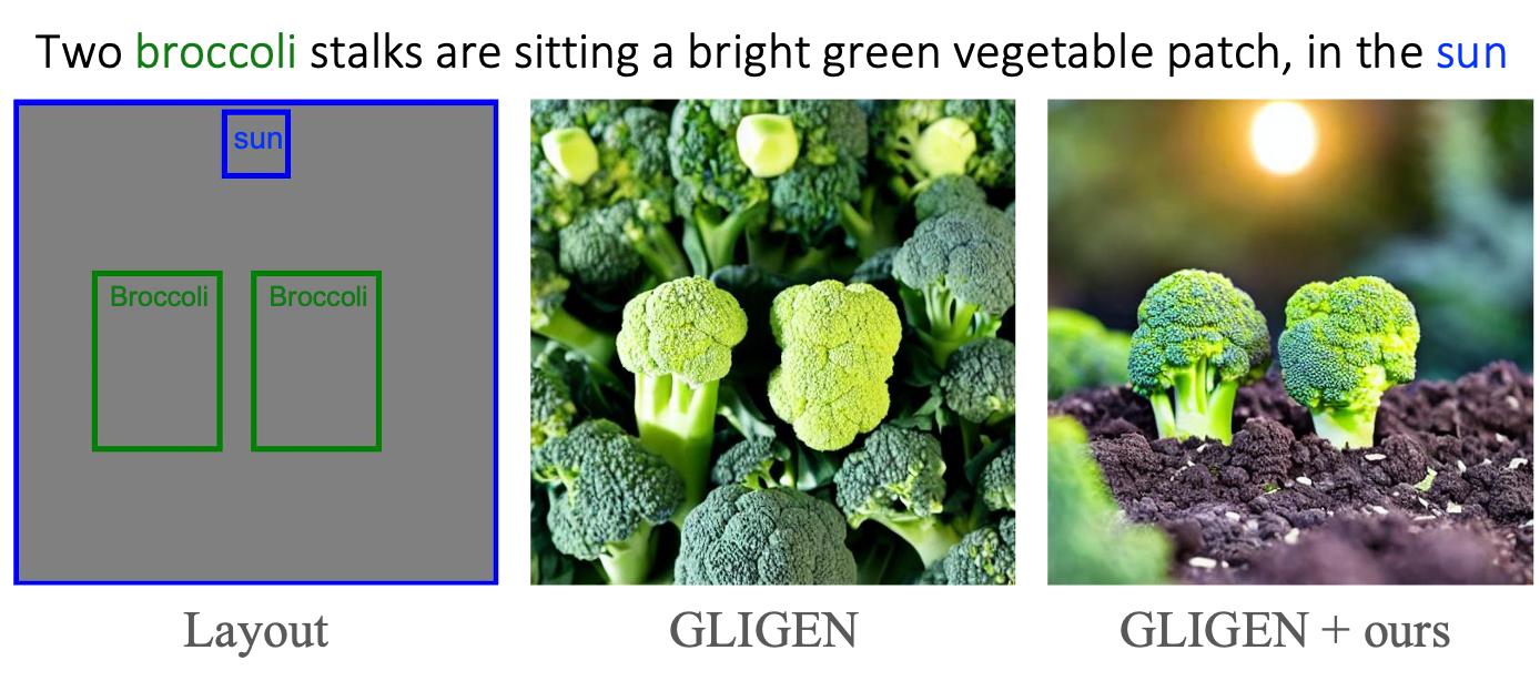 Controllable text-to-image synthesis with attention refocusing. We introduce a new framework to improve the controllability of text-to-image synthesis given the text prompts. We first leverage GPT-4 to generate layouts from the text prompts and then use grounded text-to-image methods to generate the images given the layouts and prompts. However, the detailed information, like the quantity, identity, and attributes, is often still incorrect or mixed in the existing models. We propose a training-free method, attention-refocusing, to improve on these aspects substantially. Our method is model-agnostic and can be applied to enhance the control capacity of methods like GLIGEN (top row) and ControlNet (bottom rows)