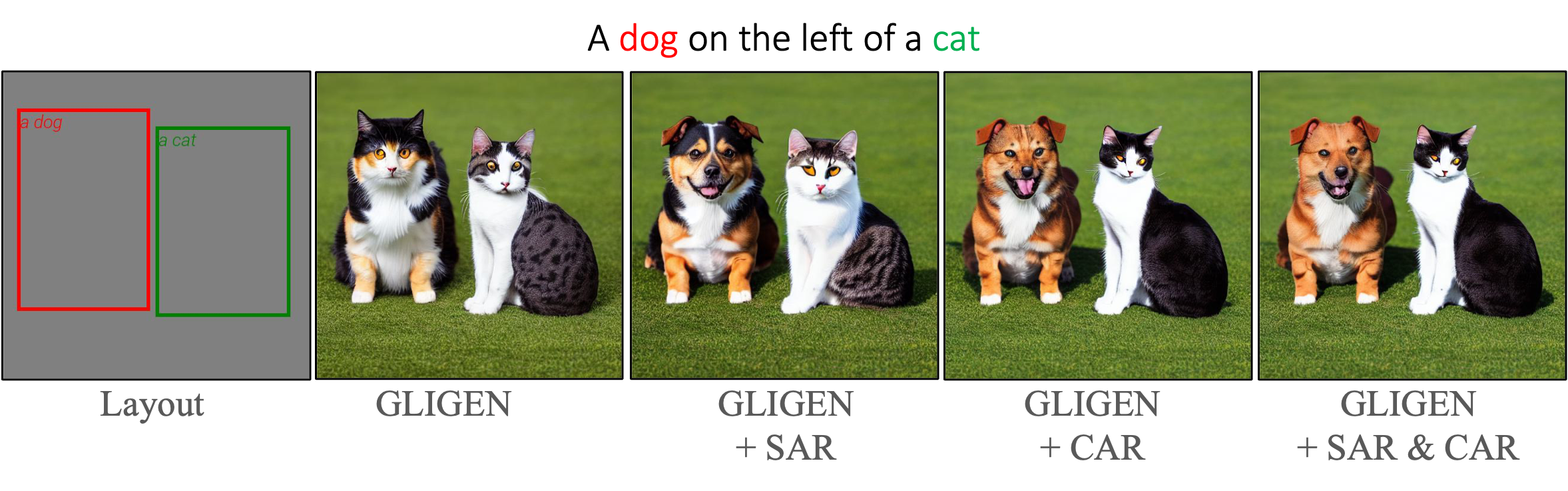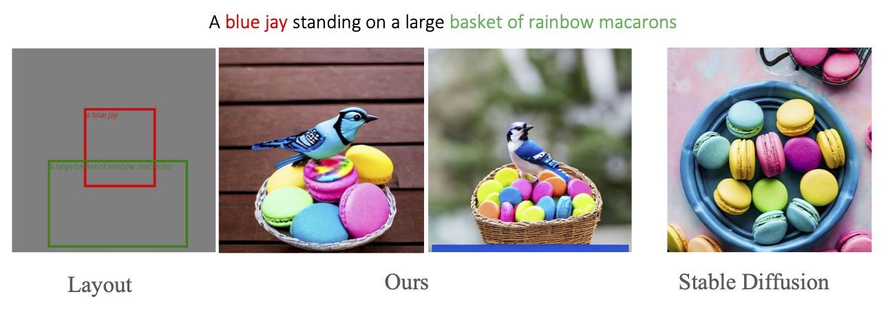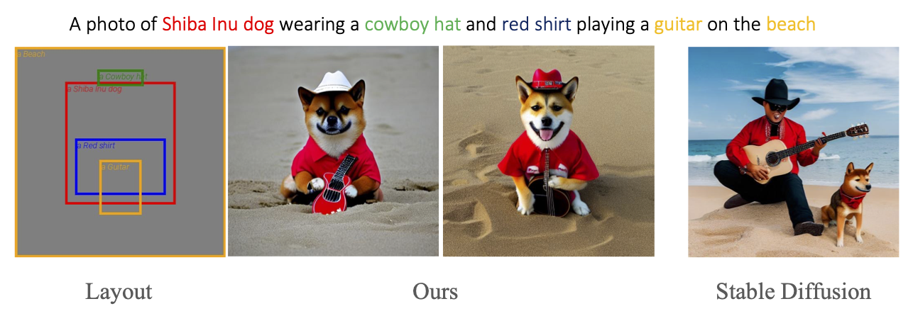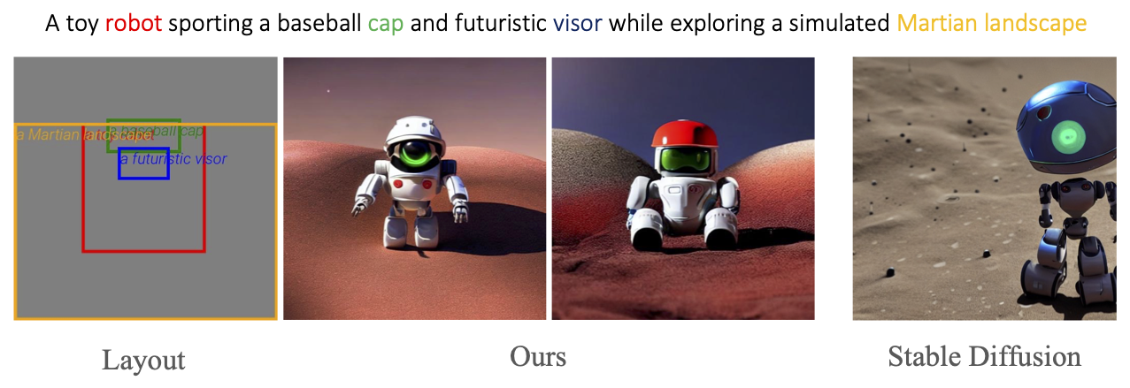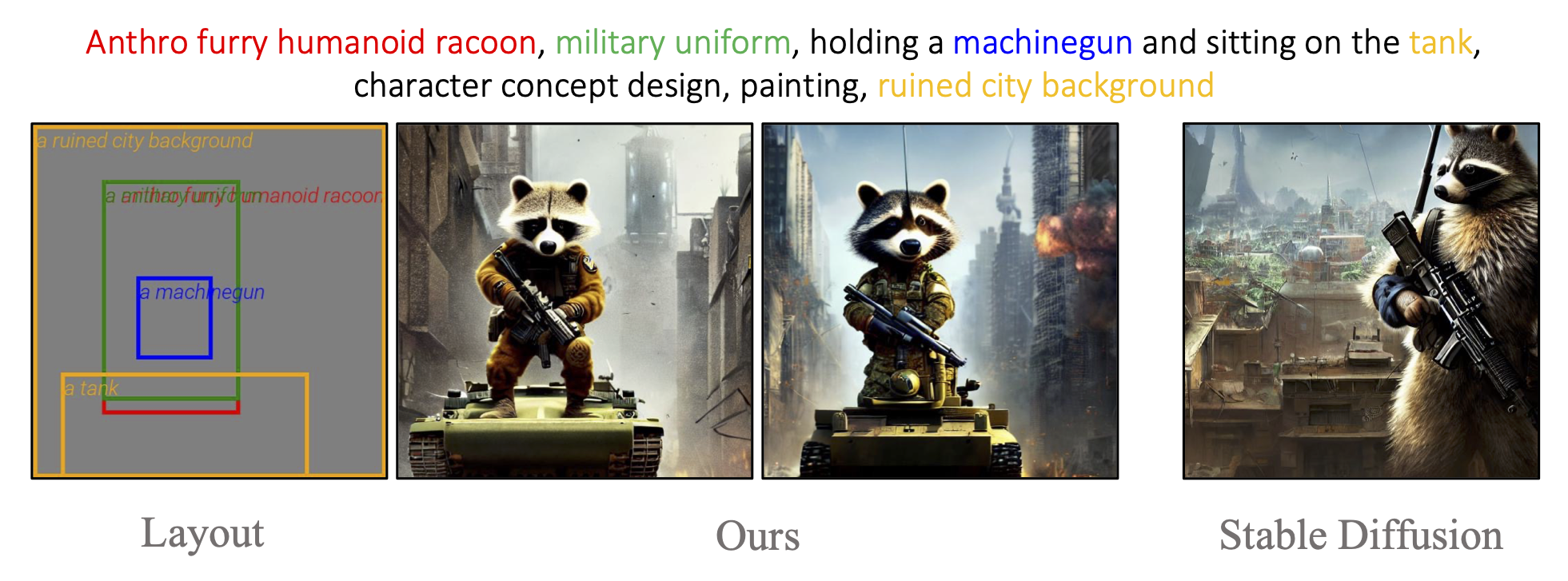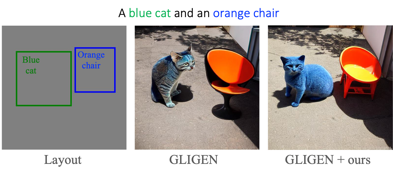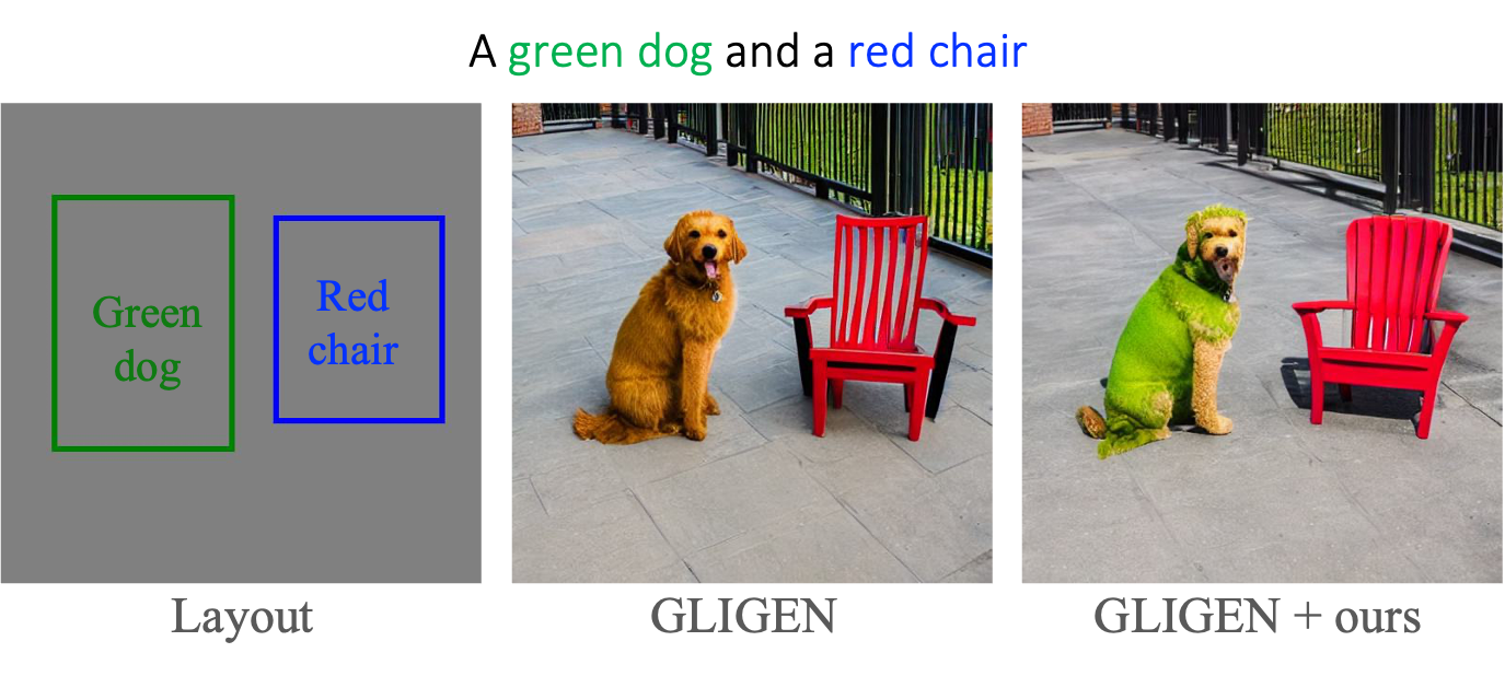 Controllable text-to-image synthesis with attention refocusing. We introduce a new framework to improve the controllability of text-to-image synthesis given the text prompts. We first leverage GPT-4 to generate layouts from the text prompts and then use grounded text-to-image methods to generate the images given the layouts and prompts. However, the detailed information, like the quantity, identity, and attributes, is often still incorrect or mixed in the existing models. We propose a training-free method, attention-refocusing, to improve on these aspects substantially. Our method is model-agnostic and can be applied to enhance the control capacity of methods like GLIGEN (top row) and ControlNet (bottom rows)