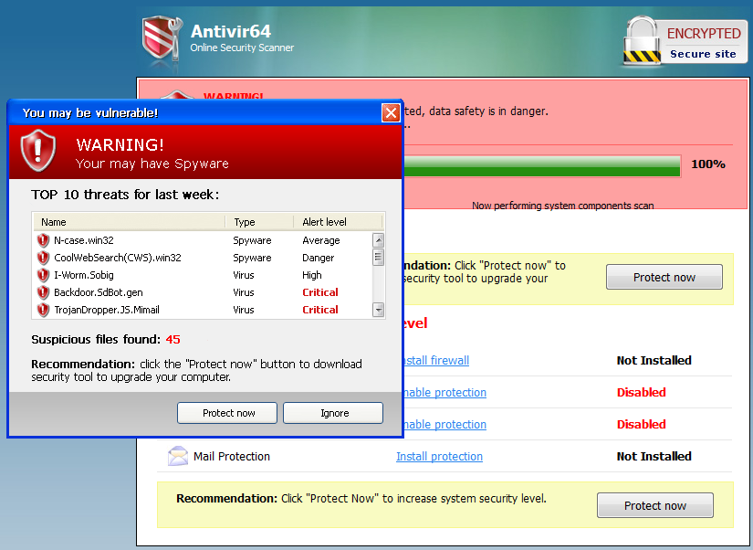 The static screenshot does not do it justice; the scrollbar moves, the list of files fly by as they are “scanned,” and the web page rather successfully simulates an ersatz UI somewhere between Windows XP and Windows Vista. Of course, we know this Fake User Interface is completely invalid, because it is running in the browser, not on our PC. You and I may understand that distinction, but what about your parents? Your wife? Your children? Your less technically savvy friends? Will they understand this scary, authentic looking virus warning coming from an “encrypted secure site” is all a lie?