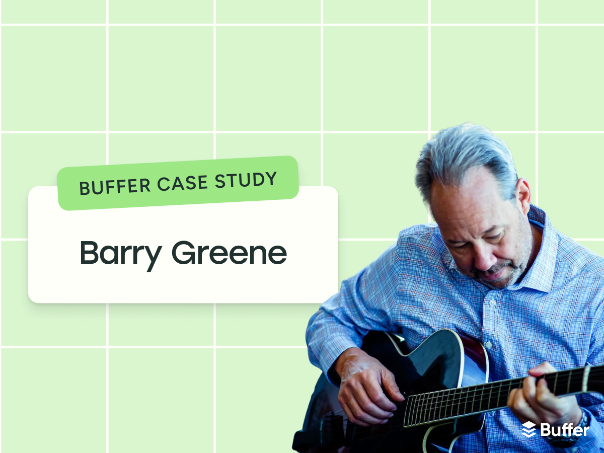 Barry Greene is a jazz guitar professor who teaches thousands of students online. With Buffer, he’s able to share daily lessons across four platforms without the stress of constant posting. Here’s how he keeps his workflow simple, consistent, and focused on what matters most: the music.