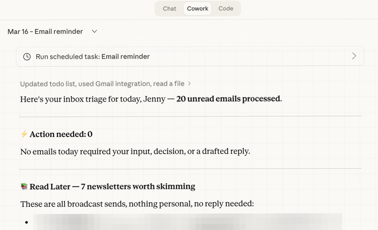 Best for: Anyone with a recurring multi-step workflow across different apps — inbox, CRM, spreadsheet, Slack — that they want running automatically without babysitting
