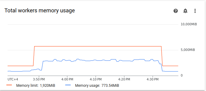 Figure 10. Total workers memory usage graph after the tasks were consolidated (click to enlarge)