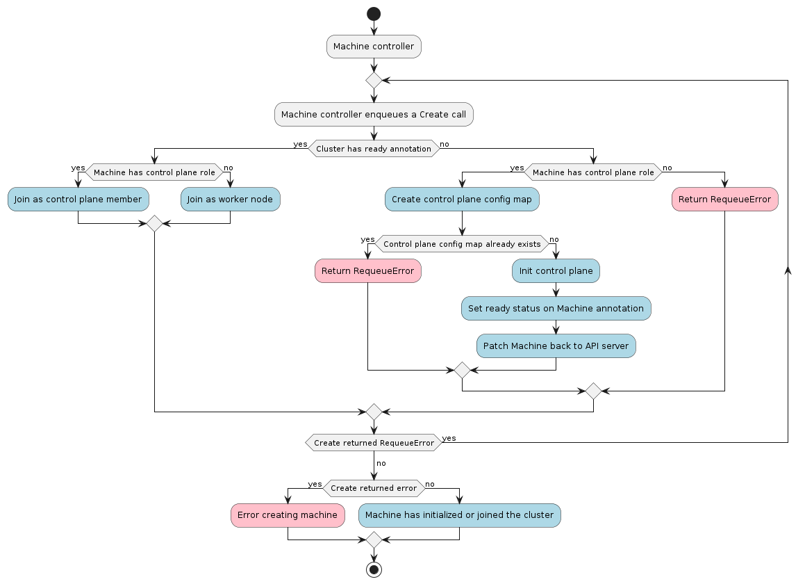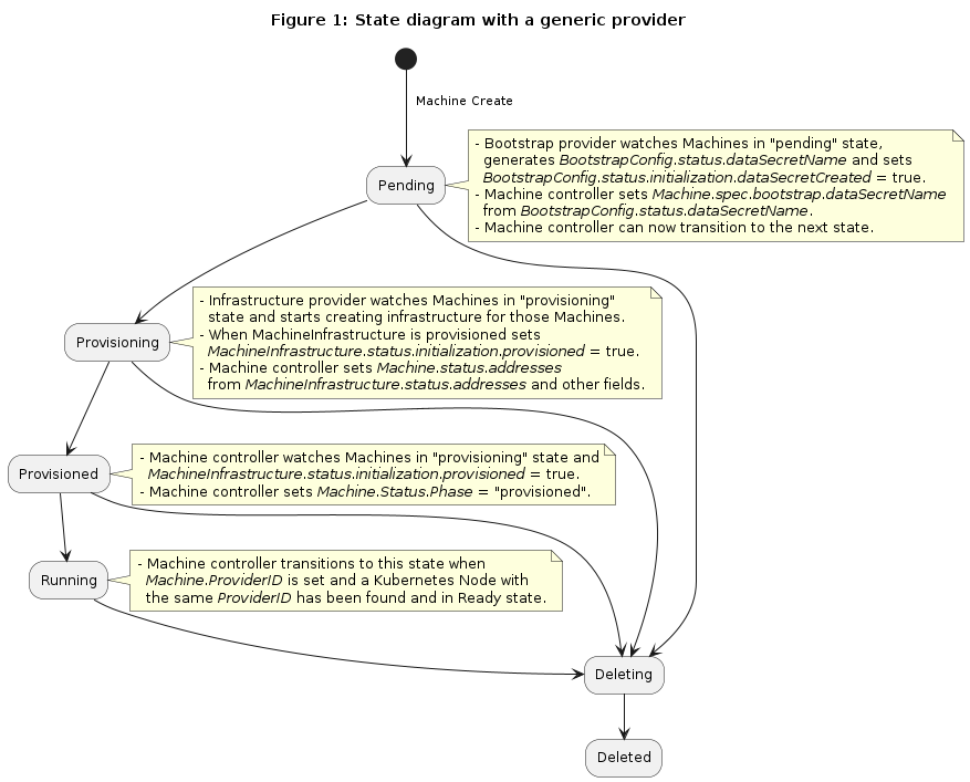 Machine.spec.bootstrap.configRef. - Keeping the Machine’s status in sync with the InfraMachine and BootstrapConfig’s status.