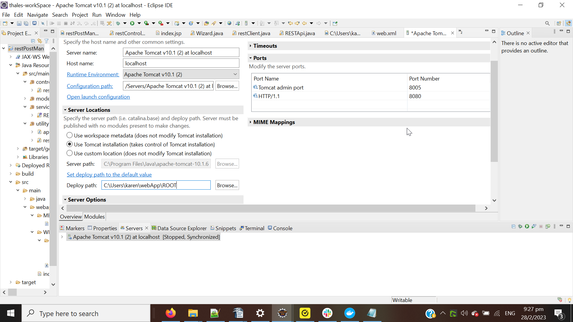 Caused by: org.apache.catalina.LifecycleException: Failed to start component [StandardEngine[Catalina].StandardHost[localhost].StandardContext[/restPostMan]]