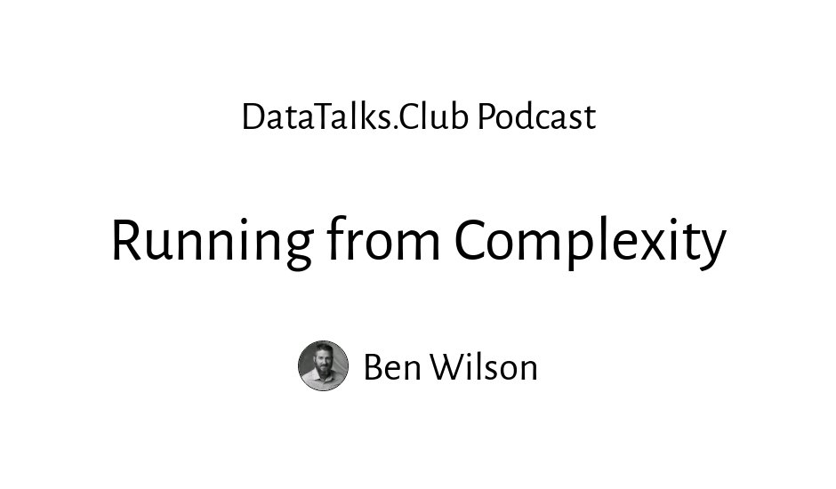 Alexey: Today, we'll talk about running from complexity, which means starting with simpler things when we do our machine learning projects. We have a special guest today, Ben Wilson. Ben is a Practice Lead Resident Solutions Architect at Databricks. That's probably the longest title for any guest I had on this show [laughs]. Ben is based in North Carolina and he's been doing data science work for the past 12 years in companies ranging from semiconductor manufacturing to fashion companies. He is working on a book for Manning, titled Machine Learning Engineering in Action, which focuses on how to get machine learning projects into production and help them stay there. Welcome, Ben. (2:14)