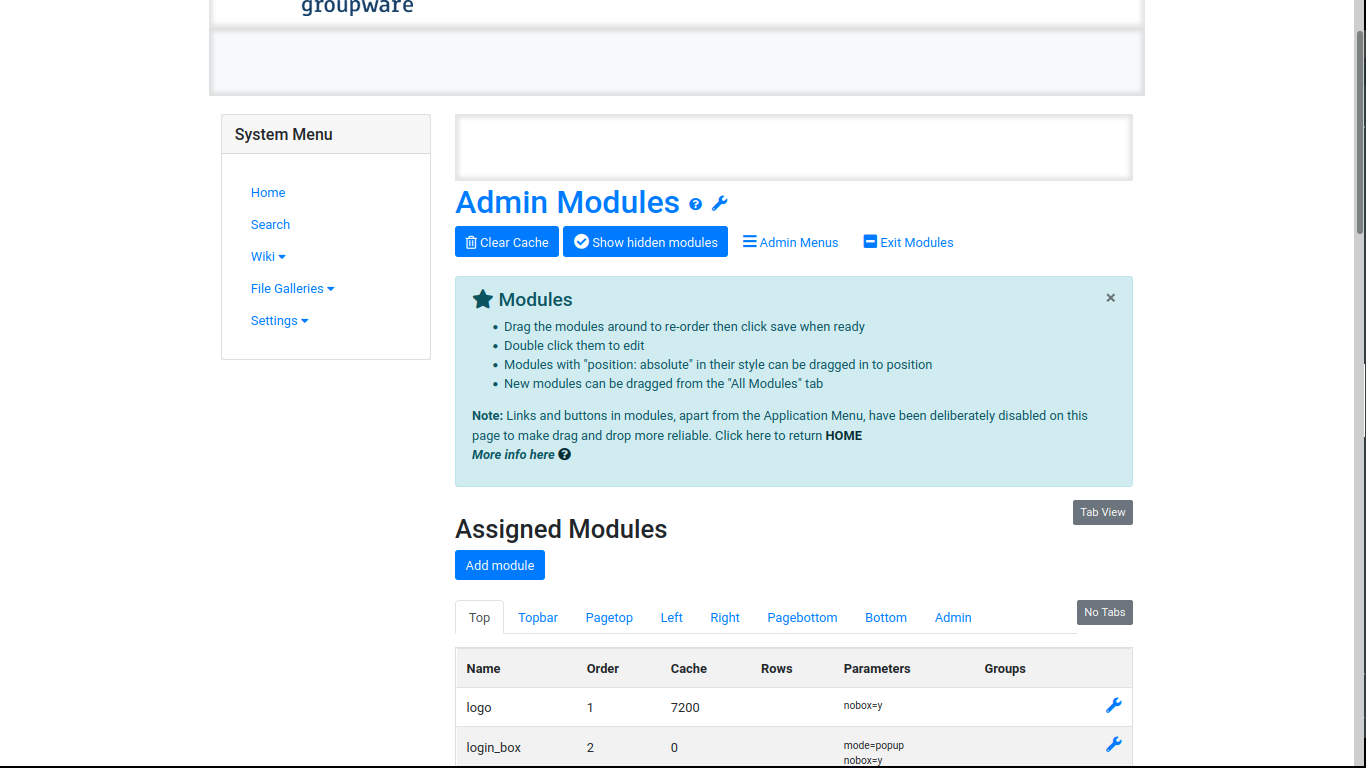 In a new 24.x vcs master installation the tiki-admin_modules.php UI is broken.