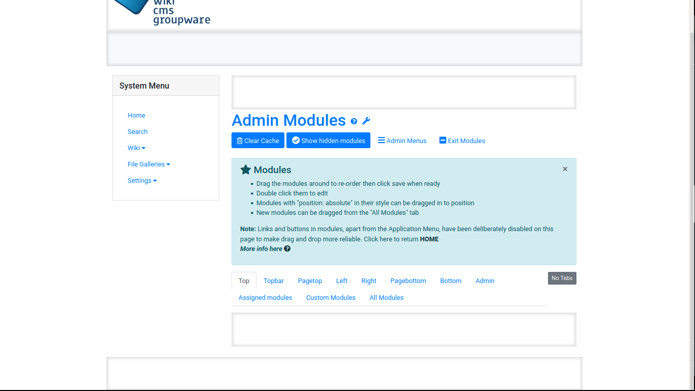 - Admin Modules: UI broken - buttons missing and tab duplication (template issue?)