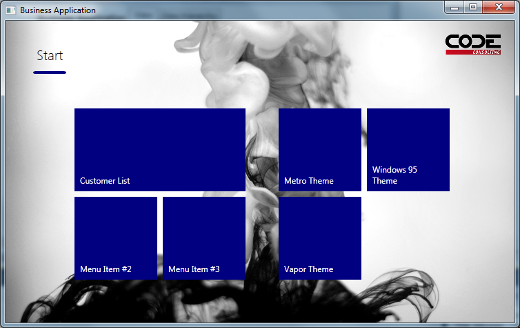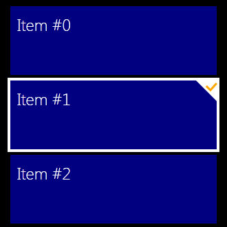<ListBox Style="{DynamicResource Metro-Control-ListBox}"> <ListBox.Resources> <SolidColorBrush x:Key="CODE.Framework-Metro-TileSelectionColor" Color="Black" /> <SolidColorBrush x:Key="CODE.Framework-Metro-TileSelectionCheckMarkColor" Color="White" /> <ListBox.Resources> </ListBox> In addition, there is the Metro-Control-ListBox-Tiles style, which lays a ListBox out like Windows 8 Metro Live Tiles. The start screen view in typical Metro applications uses this style under the hood: