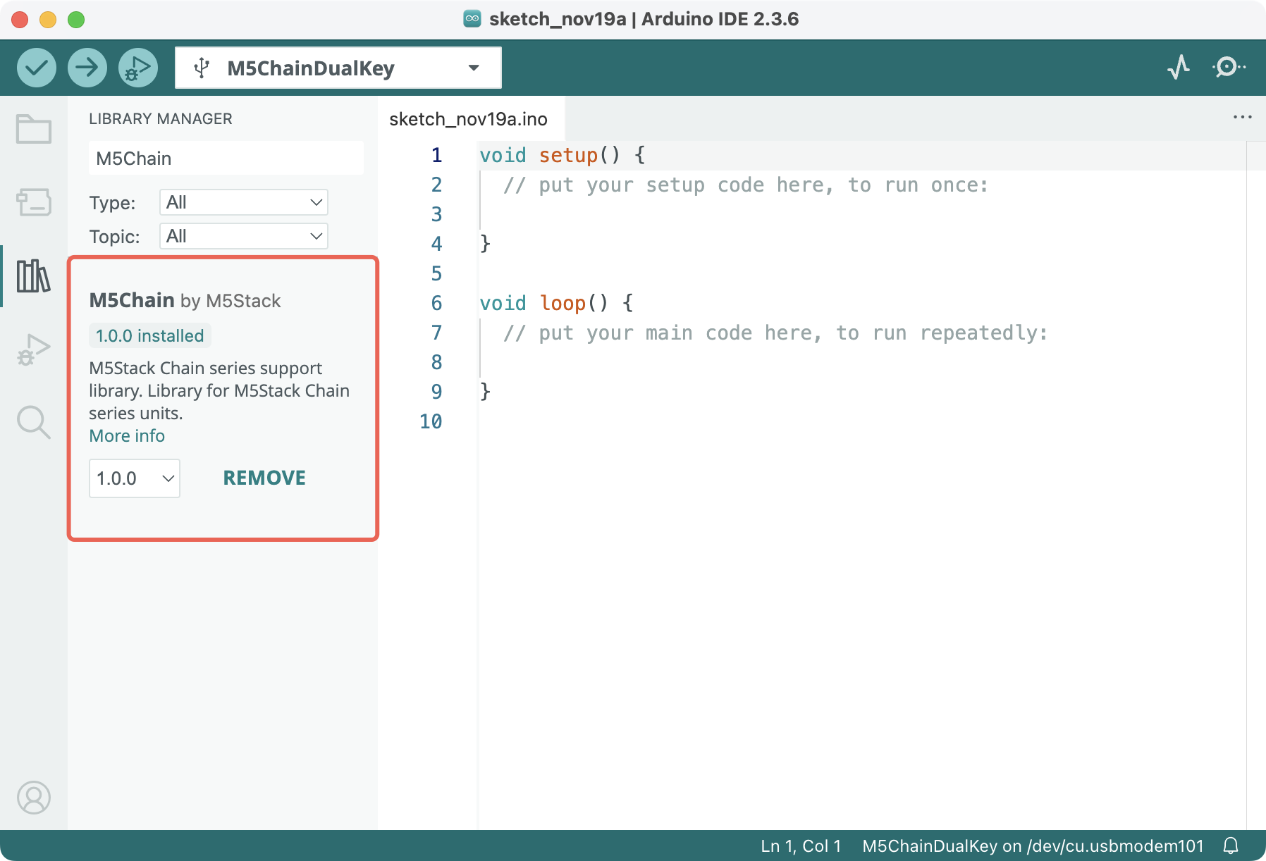 #include "M5Chain.h" #define RXD_PIN GPIO_NUM_5 // 47 for the other side of Chain DualKey #define TXD_PIN GPIO_NUM_6 // 48 for the other side of Chain DualKey Chain M5Chain; device_list_t *device_list = NULL; uint16_t device_count = 0; int16_t x_value, y_value; uint8_t button_status; chain_button_press_type_t button_press_type; void setup() { Serial.begin(115200); delay(1000); Serial.println("==========================="); Serial.println("M5Stack Chain Joystick Test"); M5Chain.begin(&Serial2, 115200, RXD_PIN, TXD_PIN); M5Chain.getDeviceNum(&device_count); device_list = (device_list_t *)malloc(sizeof(device_list_t)); device_list->count = device_count; device_list->devices = (device_info_t *)malloc(sizeof(device_info_t) * device_count); M5Chain.getDeviceList(device_list); if (device_list->devices[0].device_type == CHAIN_JOYSTICK_TYPE_CODE) { Serial.println("ID[1] is Chain Joystick\n"); delay(1000); } else { Serial.println("ID[1] is NOT Chain Joystick\n"); return; } } void loop() { M5Chain.getJoystickMappedInt16Value(1, &x_value, &y_value); // Device ID Serial.print("x_value:"); Serial.println(x_value); Serial.print("y_value:"); Serial.println(y_value); M5Chain.getJoystickButtonStatus(1, &button_status); // Device ID Serial.print("button_status:"); Serial.println(button_status); while (M5Chain.getJoystickButtonPressStatus(1, &button_press_type)) { // Device ID switch (button_press_type) { case CHAIN_BUTTON_PRESS_SINGLE: Serial.println("Single pressed"); break; case CHAIN_BUTTON_PRESS_DOUBLE: Serial.println("Double pressed"); break; case CHAIN_BUTTON_PRESS_LONG: Serial.println("Long pressed"); break; } } }Use the Chain Bridge connector to connect the main controller Chain DualKey and Chain Joystick. Pay attention to the direction when connecting — the triangular arrow should point outward from the main controller Chain DualKey, as shown below:
