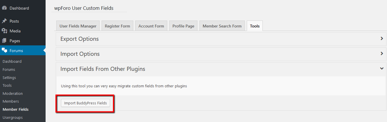 Import user custom fields from BuddyPress to wpForo