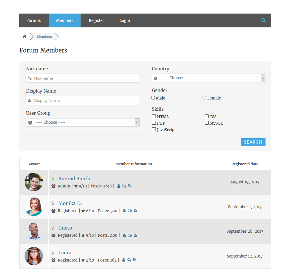 Custom Members Search Form