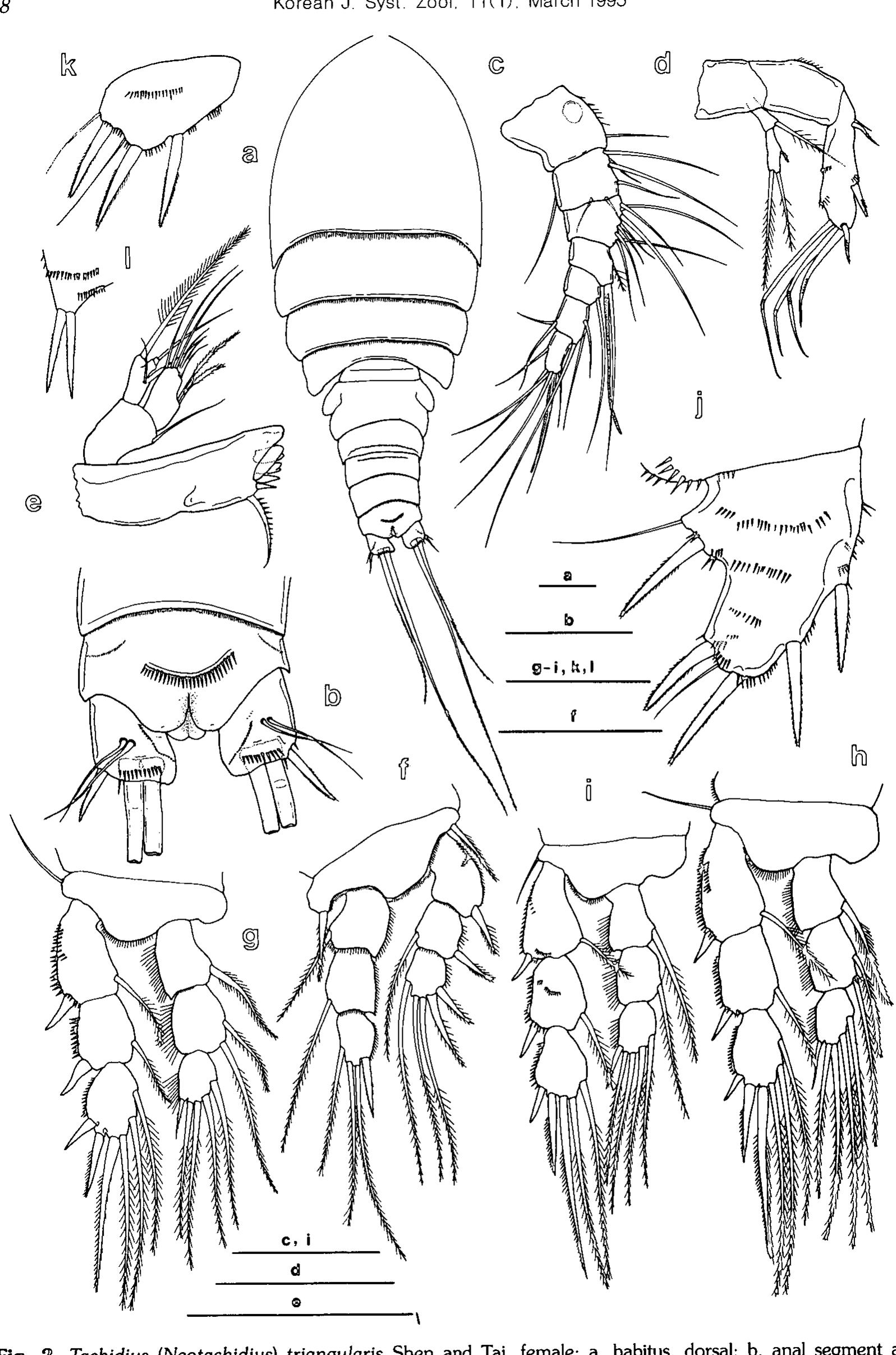 Two new harpacticoid species of family Thalestridae are described on the basis of the specimens c... more Two new harpacticoid species of family Thalestridae are described on the basis of the specimens collected from the shallow sublittoral sand bottom or seagrasses of rocky shore in South Korea. Dactylopusia pauciarticulata n. sp. is discernible from its 19 congeners by the 6‐articulated antennule. Paradactylopodia koreana n. sp. most resembles P. striata Kunz, 1973 of its seven congeners, but obviously