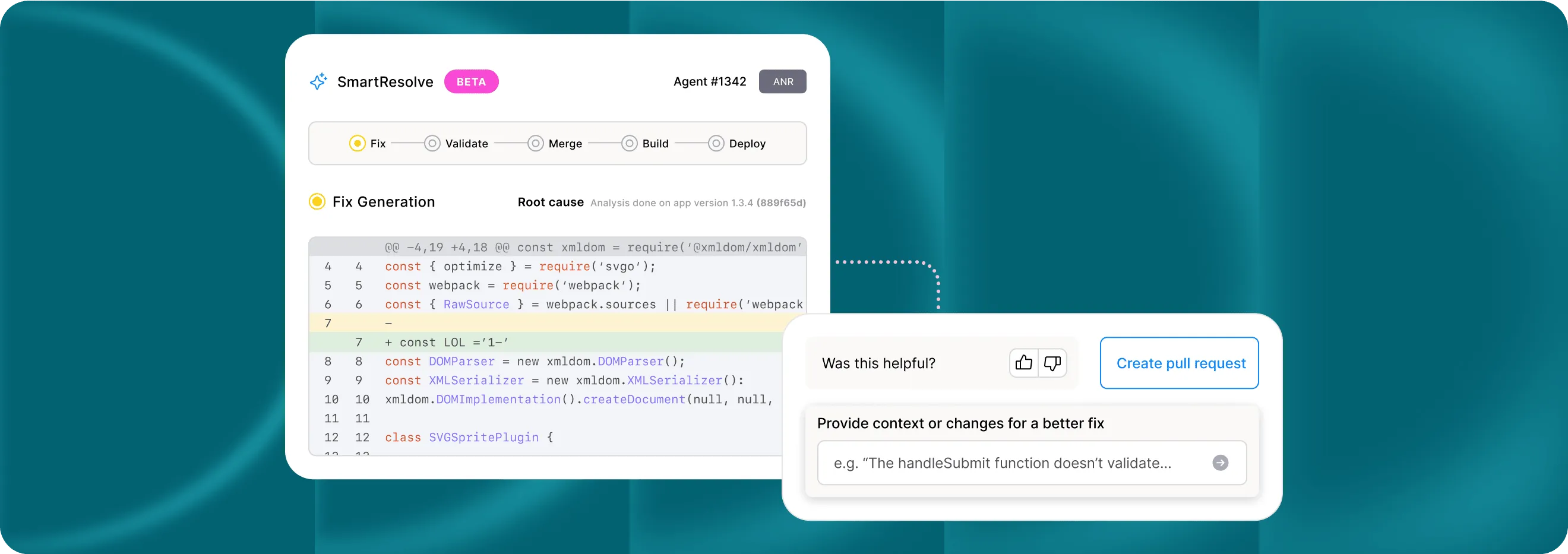 Accelerate fixes with context-rich automation through SmartResolve, root cause analysis, automated pull requests, and validation, reducing engineering effort and cycle time.