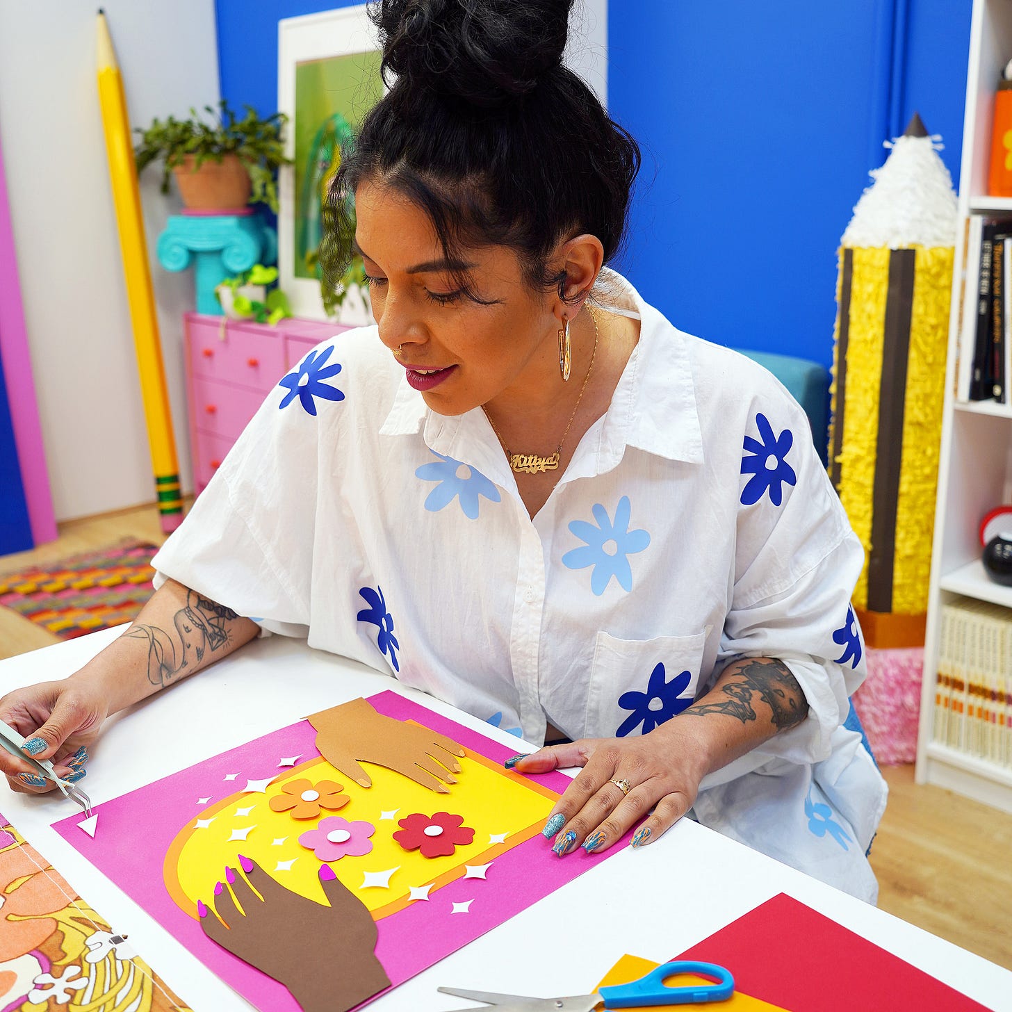 My name is Kitiya Palaskas, I’m an artist, designer, maker, and author based in Melbourne, Australia. I’ve been running my design practice Kitiya Palaskas Studio for the past 15 years, creating props, installations, illustrations, and digital content for brands all over the world. Everything I make celebrates handmade culture and techniques in all forms, and I am passionate about contributing to keeping handmade skills alive through my work, and spreading joy and delight through my colourful and playful projects.