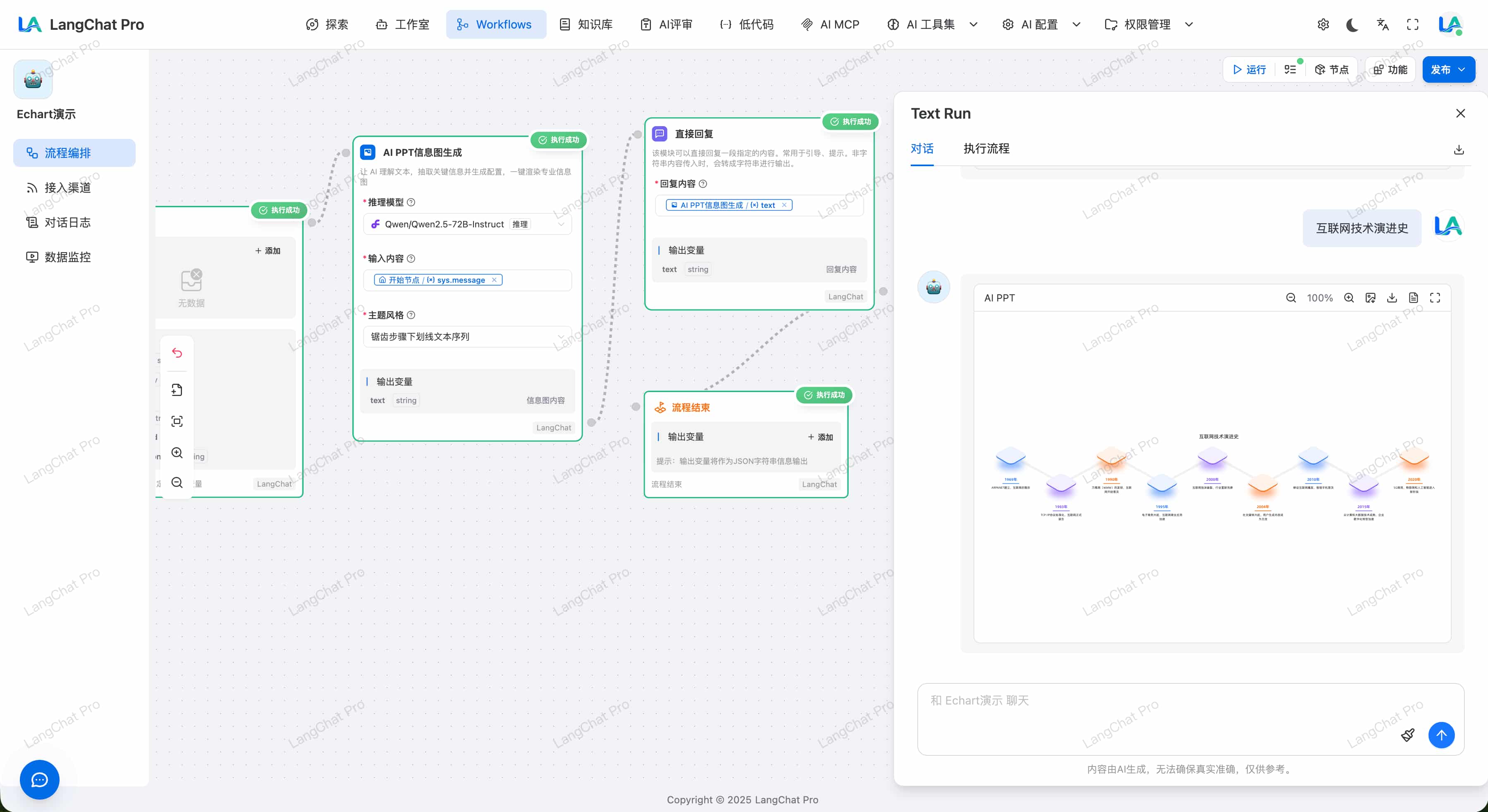 平台采用高度解耦的模块化与微服务友好的分层架构设计。企业能够依托 LangChat 快速构建高性能的 RAG 智能知识库、无缝挂载的多模态 AI 助理、以及低代码驱动的智能业务工作流,大幅降低大模型应用开发门槛,全面加速企业业务层面的数字化与智能化转型。