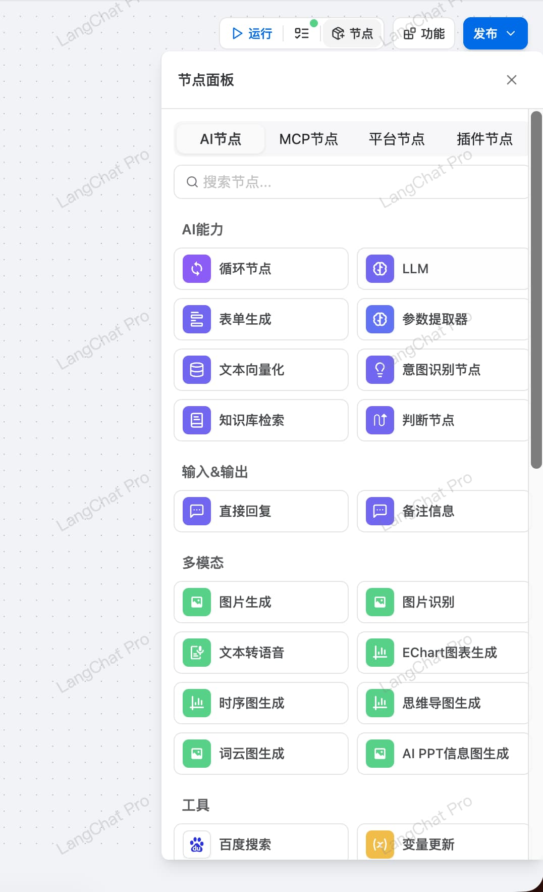 LangChat 是基于企业级 Java 生态构建的现代化 AIGC(AI Generated Content)应用开发平台,致力于为企业提供一站式的大模型私有化落地及智能应用集成解决方案。