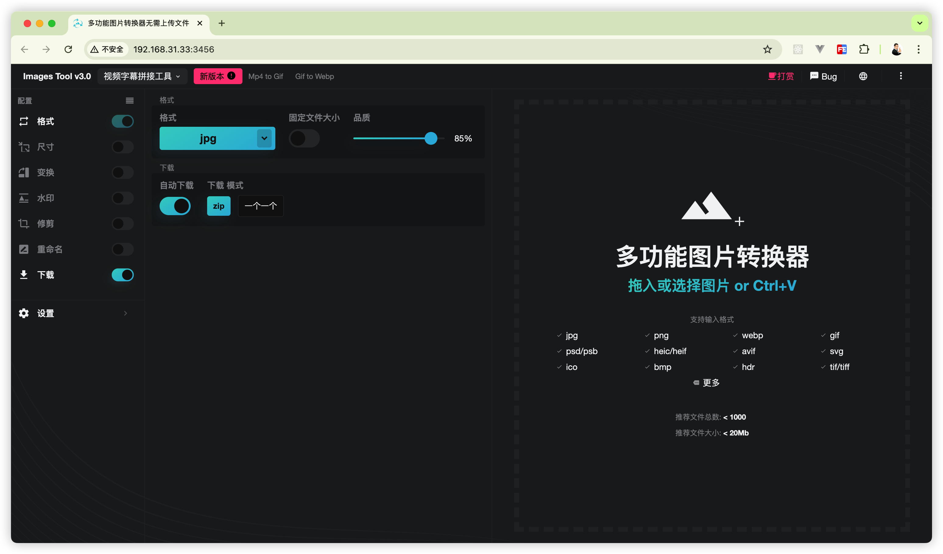webp2jpg-online 是一款图片处理工具。支持批量格式转换、改尺寸、加水印,甚至还藏着一个超好用的“视频字幕拼接”功能。