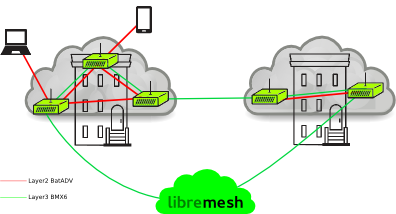 The network architecture designed for LibreMesh is based on two layers: