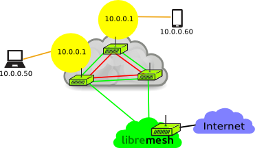 The cloud layer 2 uses the dynamic routing protocol BATMAN-adv.