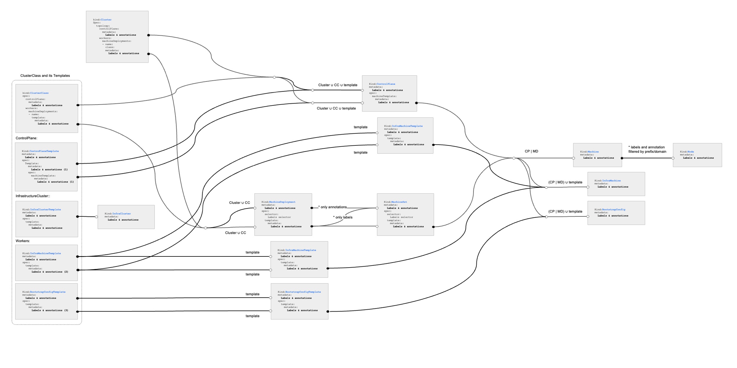 .spec.template.metadata.labels=>Machine.labels,InfraMachine.labels,BootstrapConfig.labels.spec.template.metadata.annotations=>Machine.annotations,InfraMachine.annotations,BootstrapConfig.annotations