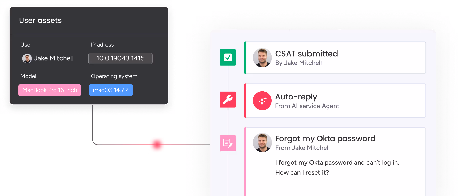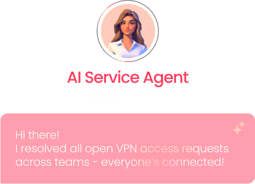 Resolve requests instantly with a built-in AI agent that delivers personalized, accurate solutions using ticket history and knowledge base.