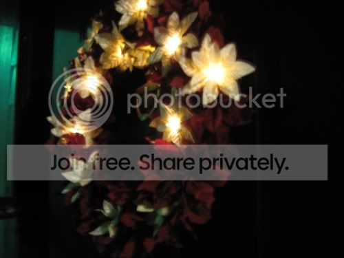 Sorry this is so, so late. With getting settled into the new house at the end of November, the whole month of December just felt like it whooshed on by. Anyhow, this is crossposted from my personal journal. Here is what the outside of our house looks like. I did swags of greenery on the front porch with a wreath near the center post, a wreath on the door and two trees in urns flanking either side, all in white lights.