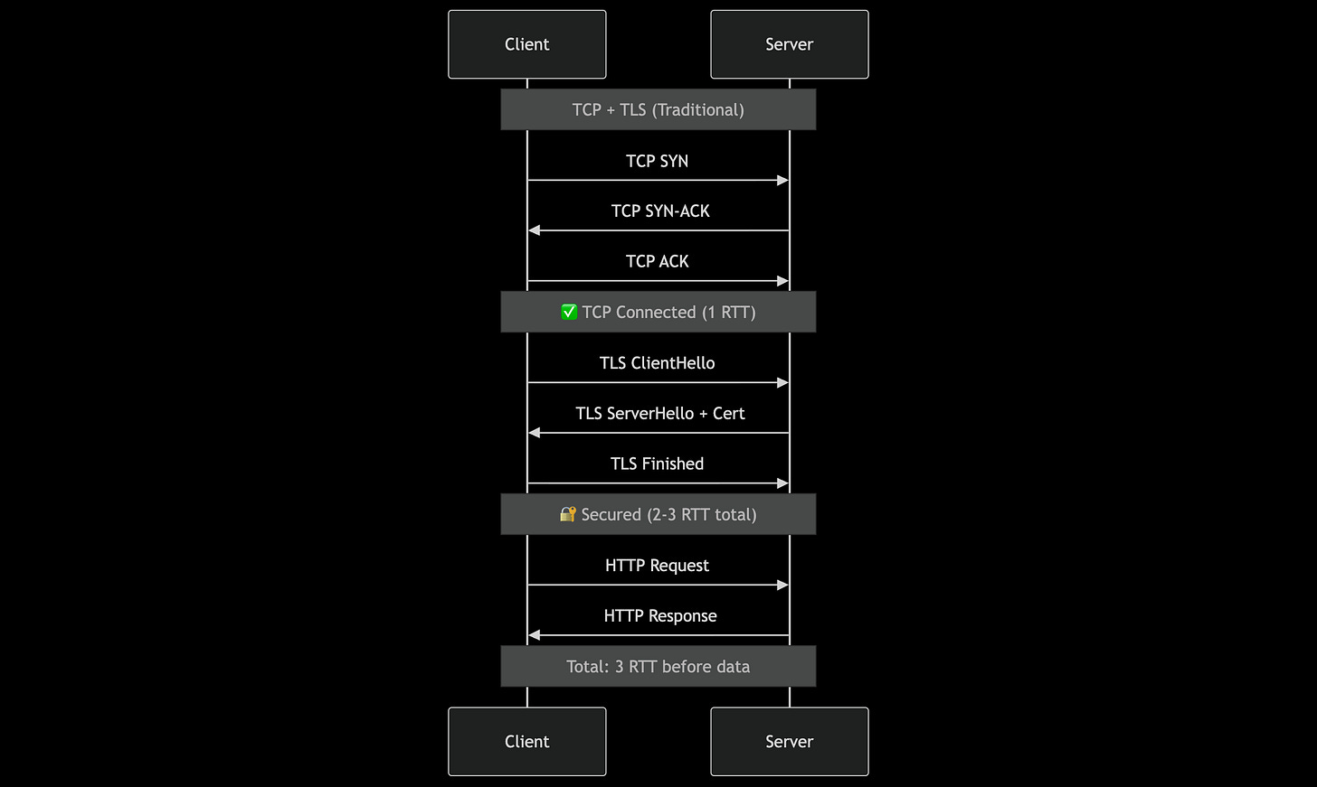 The main reason why QUIC was created is to improve performance. When you deal with TCP+TLS, you have to go through the handshake process for TCP, then the TLS handshake, and only then can you start sending data. In total, it gets to 3 round-trip (2 TCP + 1 TLS).