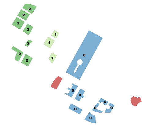 A example showing combining parcels with the same cluster number into geometry collections.