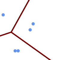 SELECT ST_VoronoiLines( 'MULTIPOINT (50 30, 60 30, 100 100,10 150, 110 120)'::geometry, 30) AS geom;