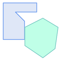 AとBがインタセクトするがAの内部とBの内部がインタセクトしない場合にはTRUEを返します。AとBが少なくとも一つの共有点があり、共有点が少なくとも一つの境界の上にあることと同じです。ポイント/ポイント入力では、ポイントは境界を持たないため、常にFALSEを返します。