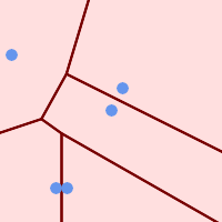 与えられたジオメトリの頂点から2次元ボロノイ図を生成します。結果はPOLYGONのGEOMETRYCOLLECTIONで、、入力の頂点の範囲以上のエンベロープを覆います。入力ジオメトリがNULLの場合にはNULLを返します。入力ジオメトリの頂点が一つの場合には空ジオメトリを返します。extend_toで作られるエンベロープの面積が0の場合には空ジオメトリを返します。