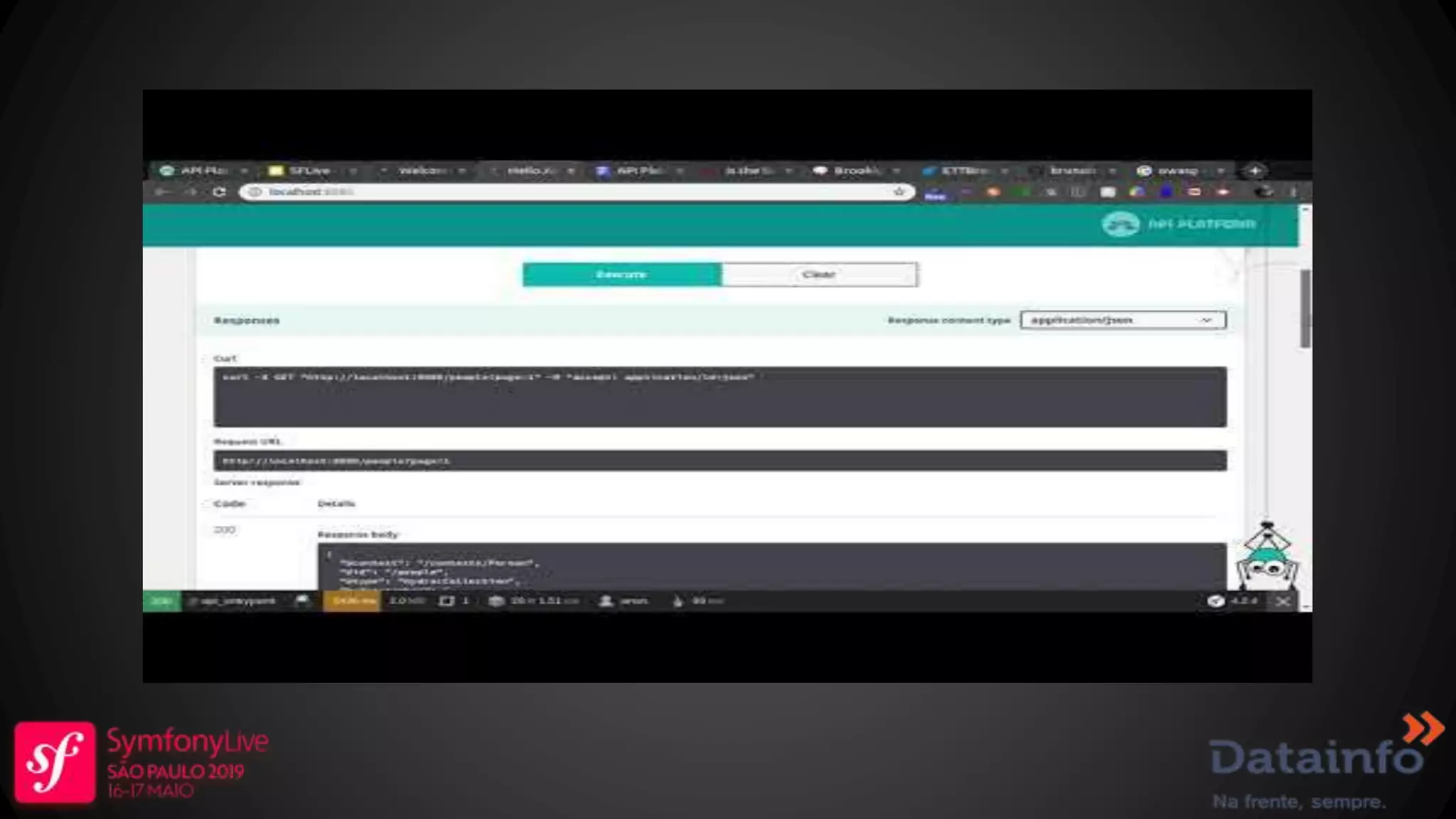 O documento apresenta o API Platform, uma ferramenta para a criação e consumo de APIs, destacando suas vantagens, instalação e componentes básicos. Também discute a arquitetura necessária para seu uso, incluindo segurança, integração com padrões como JSON-LD e GraphQL, e a documentação interativa. Além disso, menciona funcionalidades adicionais como autenticação, suporte a dados em diversos formatos e a criação de um componente administrativo para gerenciamento de conteúdo.