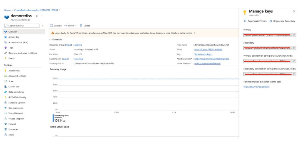 You will need keys to log in to the Redis database. Click "Overview" option in the left sidebar to see the Primary key and save it for future reference.