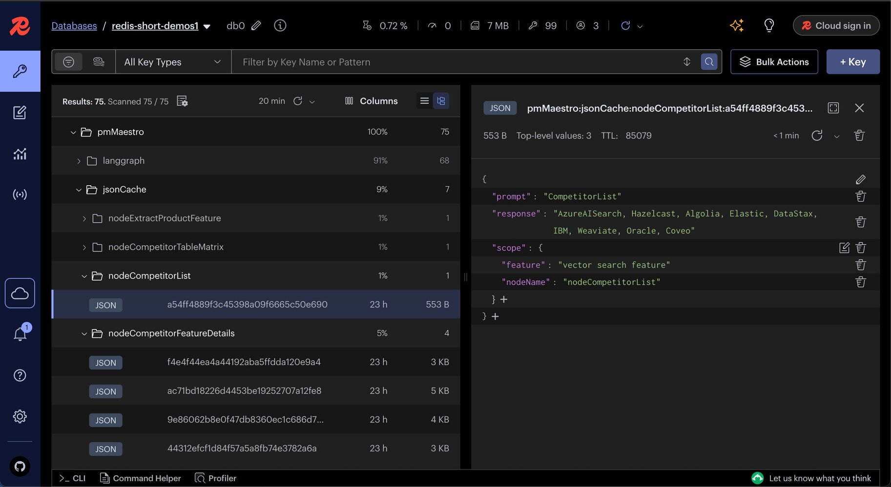LANGCACHE_URL="http://localhost:8080" LANGCACHE_CACHE_ID="cacheUUID1" LANGCACHE_ENABLED=""PM Maestro demonstrates the practical capabilities of combining LangGraph JS, Redis, Tavily, and modern AI techniques to create efficient and robust workflows tailored for Product Management. You can further customize and expand these workflows to suit your specific requirements.