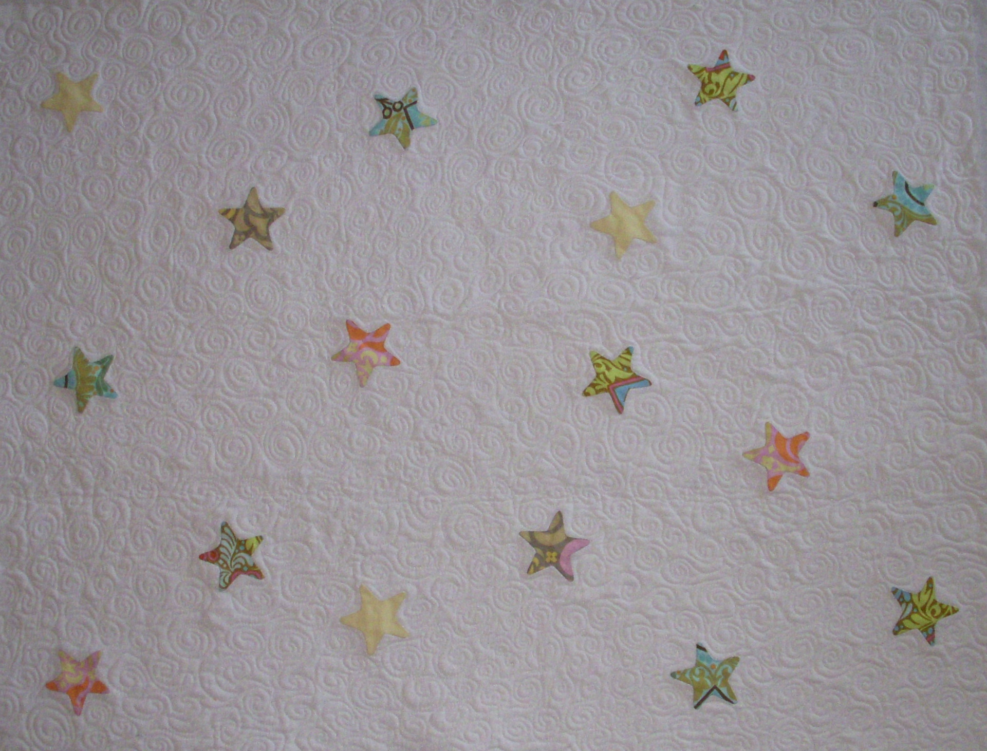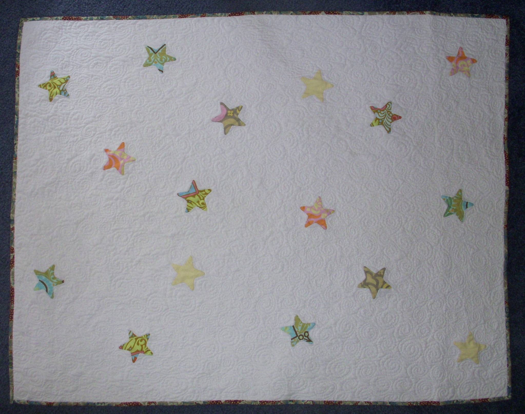 Were it not for babies, there would have been no quilting or sewing. I finished a Star baby quilt for my Super-visor! I am in the process of making receiving blanks, bibs and a sock monkey for my Boss. All things take time…