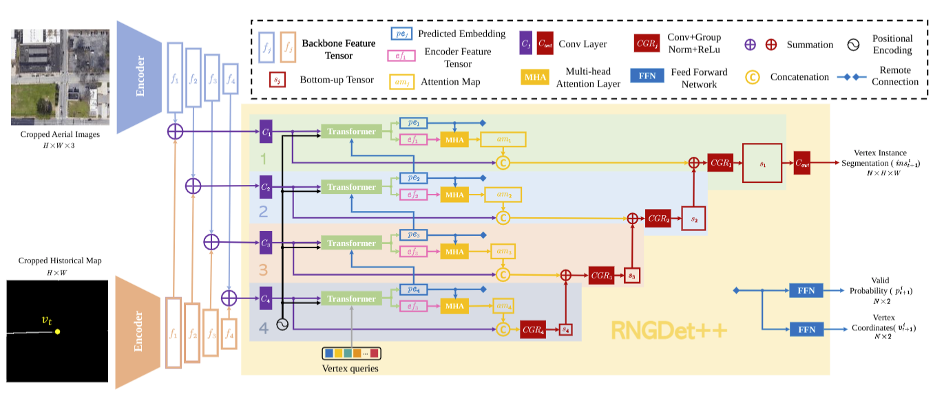 RNGDet++: Road Network Graph Detection by Transformer with Instance Segmentation and Multi-scale Features Enhancement