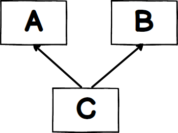 Dans l’héritage multiple, une classe peut avoir plusieurs superclasses et hériter des fonctions de toutes ses classes parentes. Comme indiqué dans la figure ci-dessous, la classe C hérite des fonctionnalités des classes A et B.